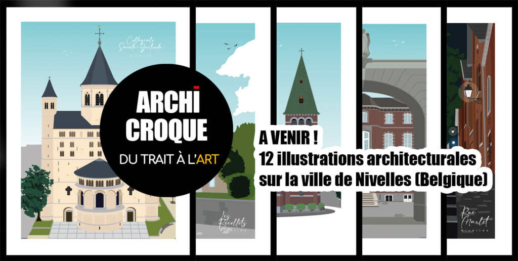 Une douzaine d’affiches vectorielles sur la ville de Nivelles et ses bâtiments emblématiques.